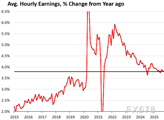 9月平均时薪较8月上涨0.25%(年化涨幅3.0%)。三个月平均时薪年化涨幅为4.0%,略有加速。自4月以来,这一三个月平均值呈现波动走势。