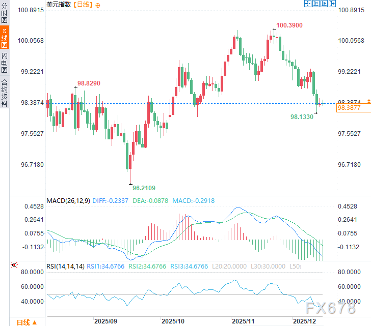 美元指数很可能进入一个波动加剧、重心逐步下移的阶段,直至美国经济出现明确的复苏信号或全球爆发更严重的危机将其推回避险角色。周一亚市时段美元指数于98.40附近震荡。
