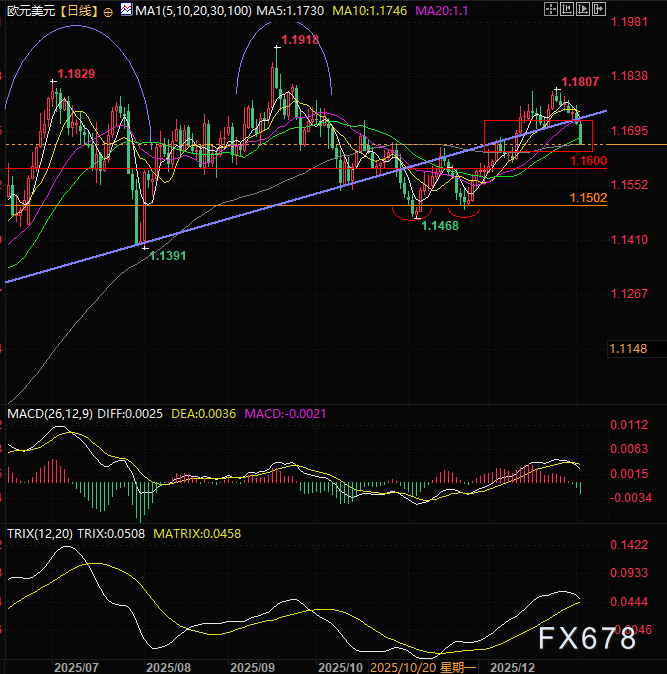 不过,欧洲央行的政策立场为欧元提供了一定支撑。该行在12月议息会议上选择维持利率不变,并释放出利率大概率将在较长周期内保持当前水平的信号。欧洲央行行长克里斯蒂娜?拉加德强调,当前地缘政治与经济环境的不确定性陡增,难以对未来政策走向给出清晰的前瞻性指引。