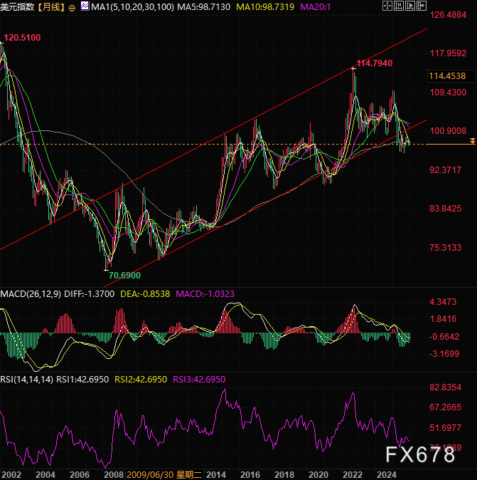 但高度依赖单一行业的脆弱性不容忽视,若AI板块泡沫破裂,海外投资者集中抛售美股将引发美元大幅下挫,甚至可能触发美联储重回零利率,导致美元指数向下发展甚至击穿90点关键支撑。