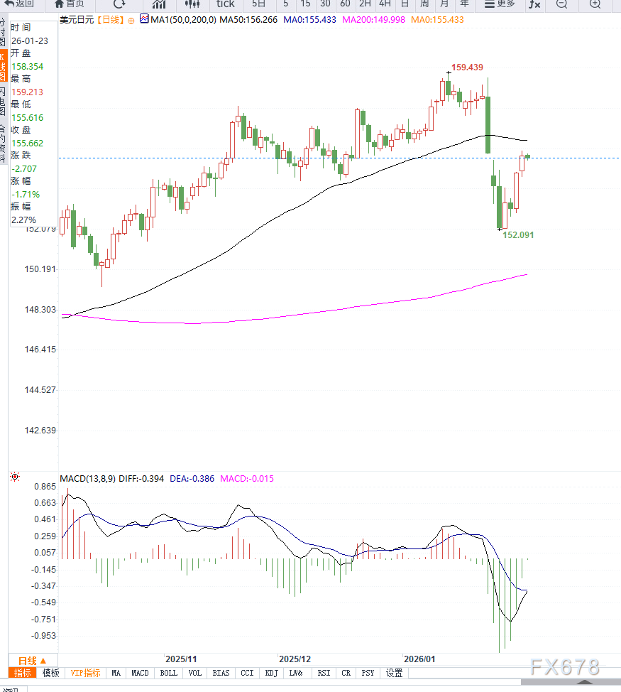 从结构角度观察,美元兑日元在重要中期均线下方运行,使得反弹更偏向技术性修复而非趋势性反转。