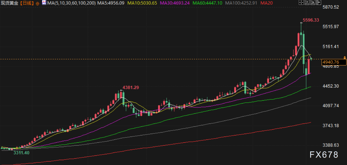 周三(北京时间2月4日)亚市早盘,现货黄金交投于4935美元/盎司附近,现货黄金周二强劲反弹超6%,创下自2008年