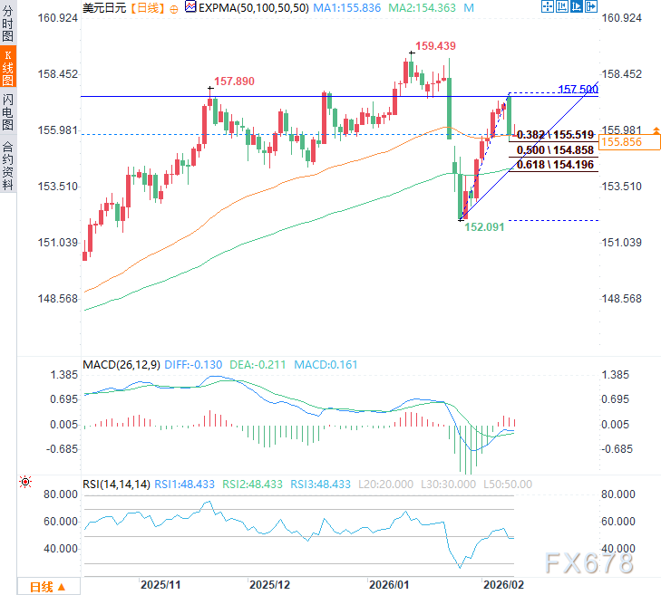 反之,若报告疲弱和/或出现大幅下修数据,美元/日元很可能跌破近期支撑,下一目标将指向100日移动平均线(154.36)与61.8%斐波那契回撤位在154.00低位区间形成的技术共振支撑。